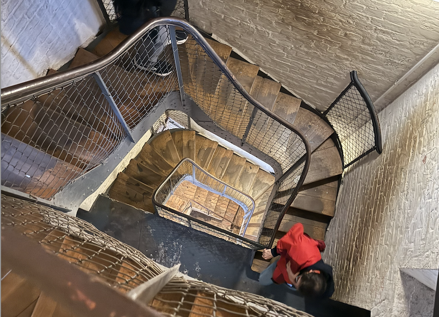 写真にあるような階段が延々と続き、フルマラソン翌日にはあまりにもハードな試練です。