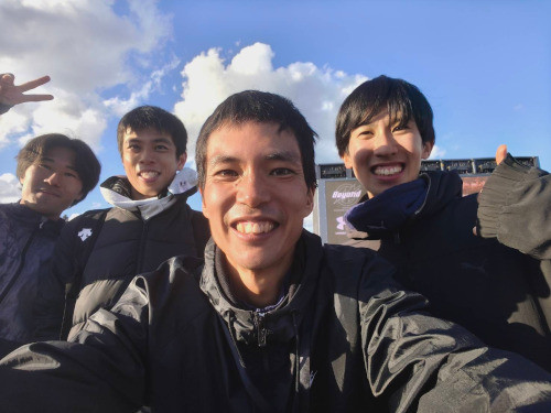 走る研究室のメンバー4人が同じ場所に集まったのも今回が初めて。近藤さん、古川くん、そして三津家さん、いつもありがとうございます!