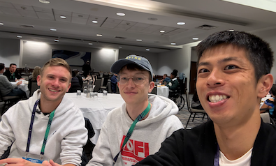 ミーティングの少し前に、相部屋のMatthewさんが部屋に到着。まさか同じソフトウェアエンジニアということもあり、とても親しみを持てました。3000m7分台というめちゃめちゃすごい記録の持ち主。しかもニューヨークでエンジニアとして働いており、仕事も競技も世界の一流である彼からはとても刺激を受けました。
